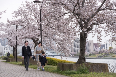 被日本人评为「最想去的赏樱地」,目黑川两岸种植800余棵染井吉野樱,全长3.8公里。花瓣飘落河面形成绝美「花筏」,是东京最上镜的赏樱地之一。
