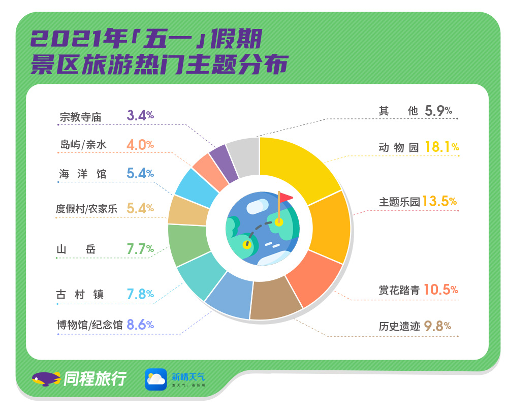 《报告》基于同程旅行平台“五一”门票预订数据的预测显示,动物园、主题乐园、赏花踏青、历史遗迹、博物馆及纪念馆、古村镇、山岳等将是最为热门的出游主题,相关重点景区或场馆的门票预订和线上预约非常火爆,部分热门景区或场馆的入园客流量有望超过2019年同期。