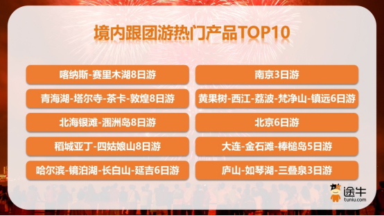 在此趋势下,自驾游、自由行、高铁游、目的地1-3日跟团游等灵活化、碎片化的出游方式成为游客的热门选择。《报告》数据显示,今年国庆中秋假期,途牛平台境内自驾游、自由行产品截至目前的预订出游人次较去年同期均增长了1倍以上。