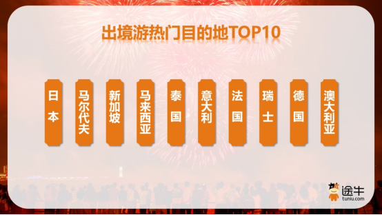 出境游热门目的地中,日本、马尔代夫、新加坡、马来西亚、泰国、意大利、法国、瑞士、德国、澳大利亚等是截至目前途牛用户的热门选择。