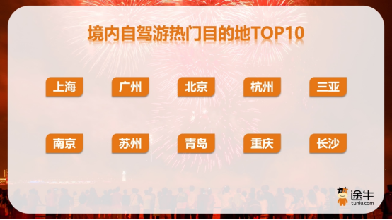 境内自驾游方面,上海、广州、北京、杭州、三亚、南京、苏州、青岛、重庆、长沙等目的地预订热度排名靠前。相关目的地的主题公园、动植物园、文博场馆、历史遗迹等备受自驾游用户青睐。