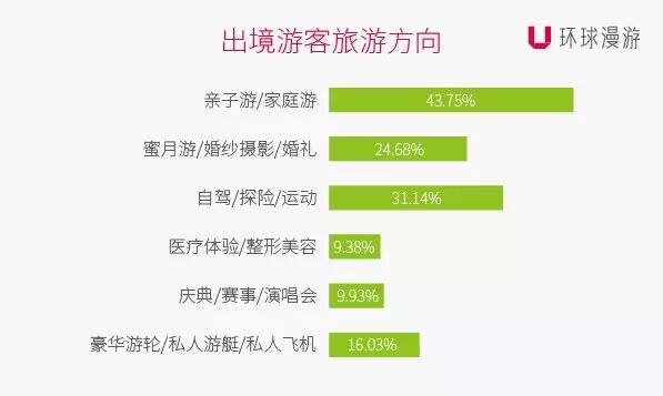 值得一提的是,高端豪华游开始走进游客视野,环球漫游大数据显示,有超过15%的游客尝试体验豪华游艇、私人飞机等高端项目。中国旅行者开始厌倦千篇一律的模式,纷纷探索更多有个性的旅游项目。