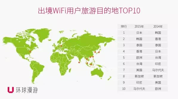 2月 1日,国内最大出境Wi-Fi运营商环球漫游发布《2015年出境Wi-Fi大数据报告》(以下简称《报告》)。该《报告》数据分析基于环球漫游拥有的数百万级别Wi-Fi用户大数据,用户出行目的地涵盖全球五大洲100多个国家和地区,是出境Wi-Fi行业内规模最大、最权威的调查分析报告。