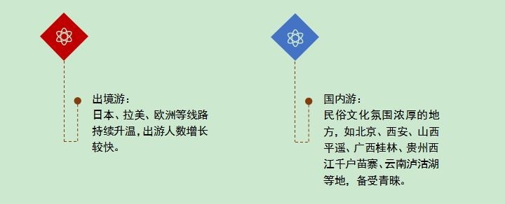 旅游体验品质的提升,是人们对美好生活向往的重要体现。愿意为更好的体验买单,已成为主流消费人群的普遍认知。我们发现,出境游可以获得与众不同的新鲜感,像日本、拉丁美洲、欧洲等线路持续升温,出游人数增长较快;而随着国内全域旅游体系的不断完善,国内游开始越来越有的玩了。国内民俗文化氛围浓厚的地方,如古都北京、西安、山西平遥、广西桂林、贵州西江千户苗寨、云南泸沽湖等地,格外受游客关注。