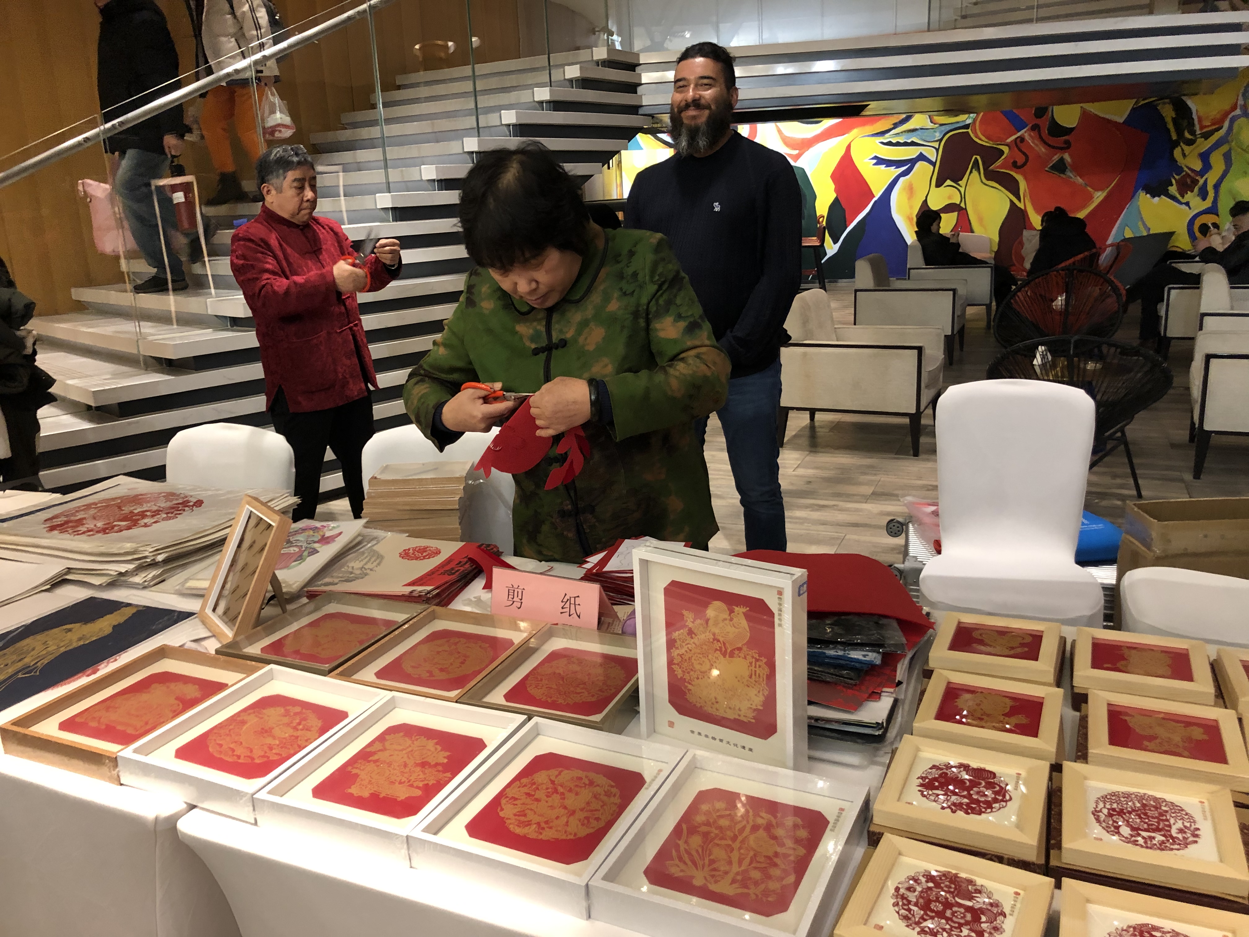 为满足入境游客及在华外国人的新年度假需求,中旅旅行将非遗与旅游产品深度融合。12月31日,游客们来到热闹的民俗市集,迎新活动正式拉开帷幕。中旅旅行特邀非遗传承人为大家展示剪纸技艺,游客们一边欣赏,一边跟随老师们走进“剪纸体验课堂”。2024年是中国的“龙年”,“龙”对于中国人有着特殊的意义,在非遗传承人手把手的教学下,游客们剪出了一条条生动形象的“龙”形图案,许下“龙腾虎跃”“吉祥如意”的美好愿望。市集上,中国传统小吃冰糖葫芦、糖炒栗子、驴打滚、棋子烧饼、麻仁大扁等美食吸引着游客驻足,大家一边分享美食,一边交流着彼此国家的新年美食风俗。