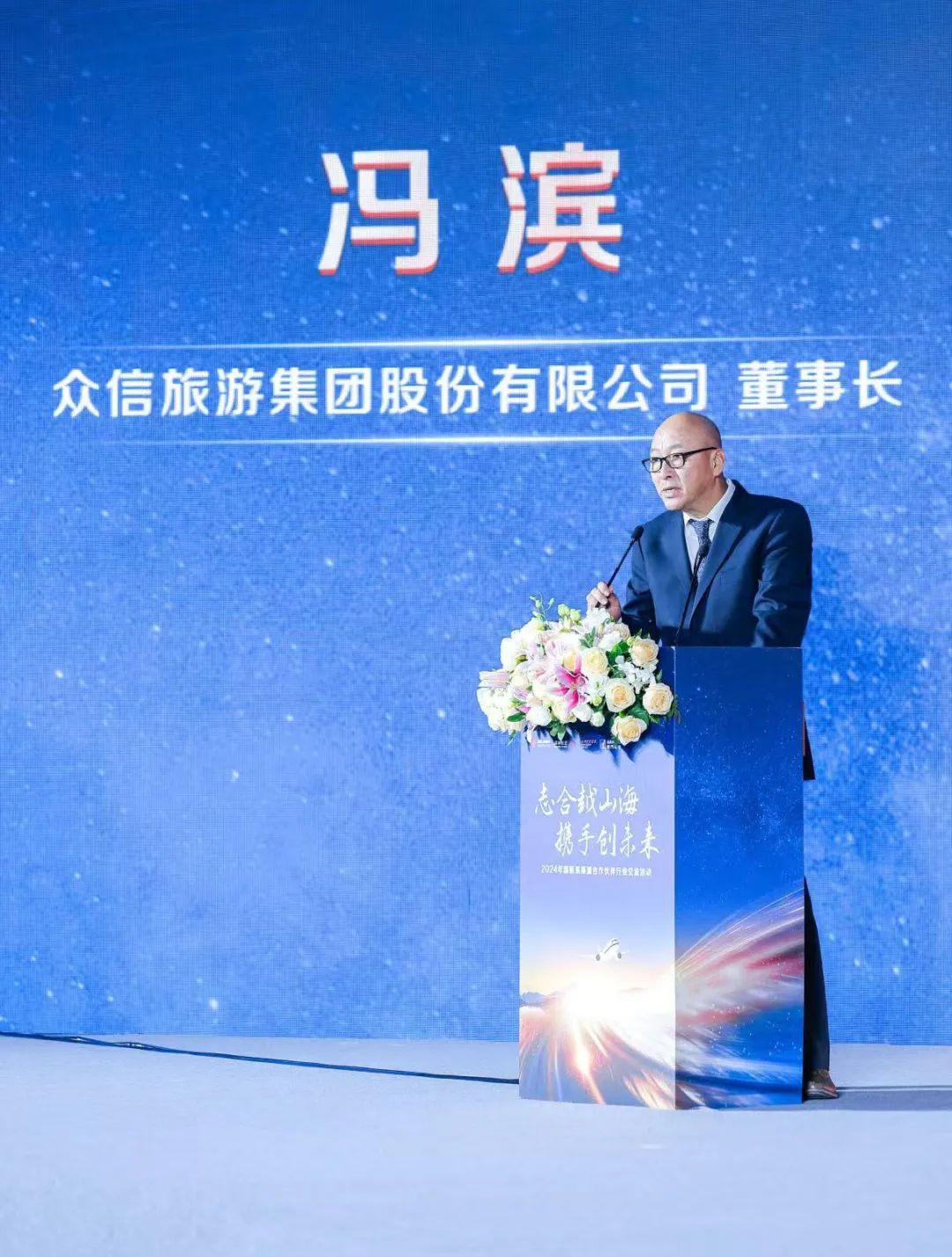 会上,众信旅游集团董事长冯滨发表重要讲话,他表示,中国国航作为众信旅游集团在航空领域内重要的合作伙伴,一直以来都为众信旅游全球目的地产品提供了最有力的航空保障和支持。中国国航作为我国航空业发展的标杆型企业,始终致力于为游客提供便捷、舒适、安全的出行体验。更在与时俱进的持续推动行业发展,不断满足游客多元化、细分化出行需求。此外,中国国航更是一家有温度的企业,不仅从游客需求出发,更扎根企业,立足行业。在旅游行业陷入困境之时,中国国航能够挺身而出,展现大企业的风范与格局,帮助旅游企业摆脱困境,赋予行业砥砺前行的勇气。