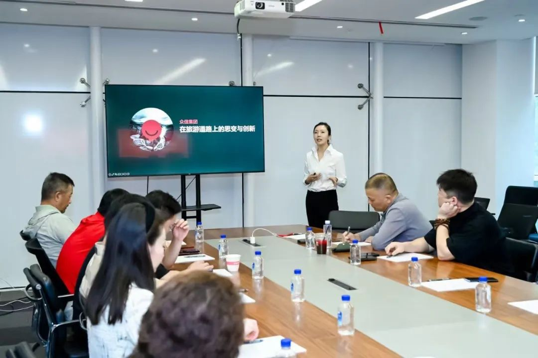 参观过程中,众信旅游集团副总裁张莉向长江商学院CEO代表团一行详细的介绍了众信旅游集团的发展历程、业务布局及企业核心竞争力。随着旅游消费需求的不断变化,作为全国综合性旅游服务运营商,众信旅游始终积极整合旅游产业链上中下游资源,深化“旅游+”战略布局,在小团游、研学游、康养旅游、体育旅游、VR及AI技术等新兴领域持续发力。