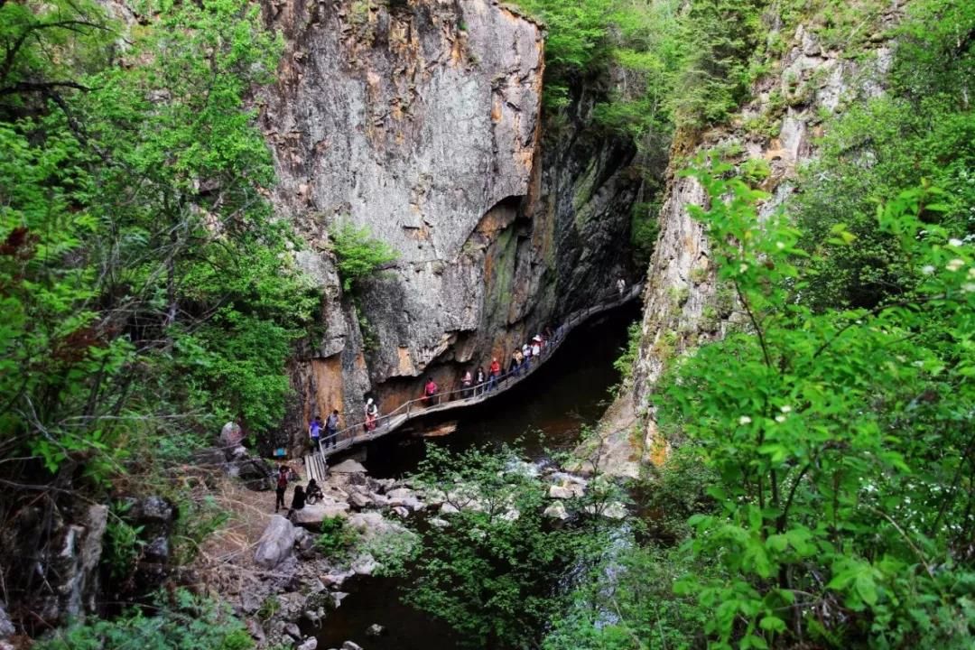 嘉荫茅兰沟森林旅游区位于伊春市嘉荫县,这里远离都市,保持了良好的原始状态和质朴的天然景色。茅兰瀑布落差10余米,宽7米,每逢雨季,洪水从高崖奔涌直泻,如骏马奔腾,势不可挡。三阶潭水流湍急,自重叠的岩石缝隙中汩汩流出,沿三个石阶婉转流下,水流积潭,潭满则泻,形成了三瀑三潭相映的奇特景观。