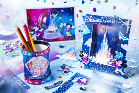 香港迪士尼特别推出三个合共超过200款商品的15周年系列,分别是Grand Celebration、Crystal Dreams和Black and Gold。乐园还与不同品牌合作推出多款独家限定商品,当中包括Pandora的金银串饰、星巴克的随行杯与手提袋,以及Citizen限量版联乘款腕表。
