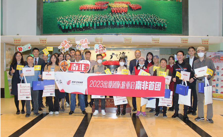 在中国恢复出境团队旅游后,首个乘坐国航前往南非的旅行团按照计划已于3月29日早晨抵达了约翰内斯堡奥利弗·坦博国际机场。首发团受到了南非旅游局首席运营官NomasontoNdlovu女士、南非旅游局官员、旅游业者以及当地航空业代表的热烈欢迎。