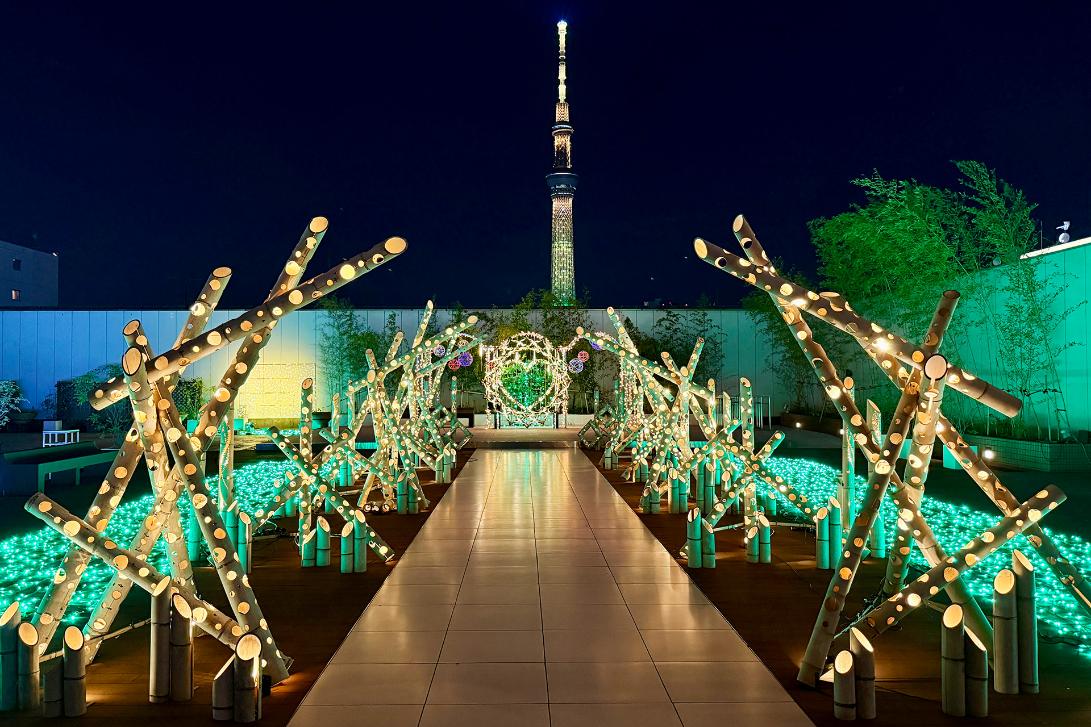 作为东武集团旗下酒店之一,东京黎凡特东武酒店在馆内特别打造了由 CHIKAKEN(三城贤士) 先生监制的「竹灯花园」。宾客可在此一边眺望东京晴空塔,一边欣赏竹与光交织而成的梦幻灯影。欢迎前来,于闪烁的竹灯之间,感受冬夜的浪漫时光。