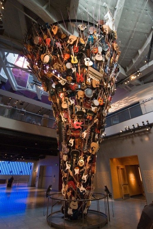 EMP西雅图音乐体验博物馆是一座五彩缤纷的建筑,它的外观如同它提供的展品一样独特。体验馆内设有多个设计新颖的画廊,以及全球最大的市内LED屏幕的音乐厅。游客可以在里面体验音乐、弹奏摇滚乐器,观看电影和流行的互动展品。