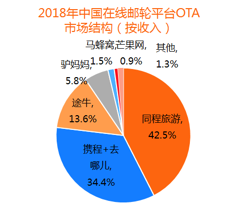 在线邮轮市场OTA占据主导地位,同程邮轮继续保持领先