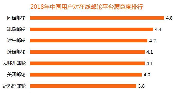 2018在线邮轮平台满意度排名,同程邮轮、凯撒邮轮等领先