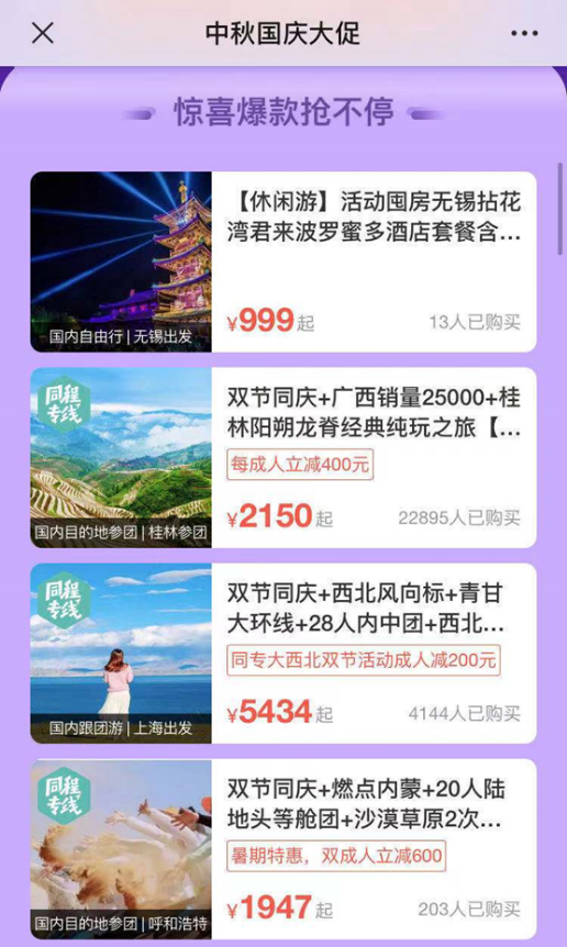 全国多地恢复跨省游 同程旅游推出中秋国庆“双节”预售