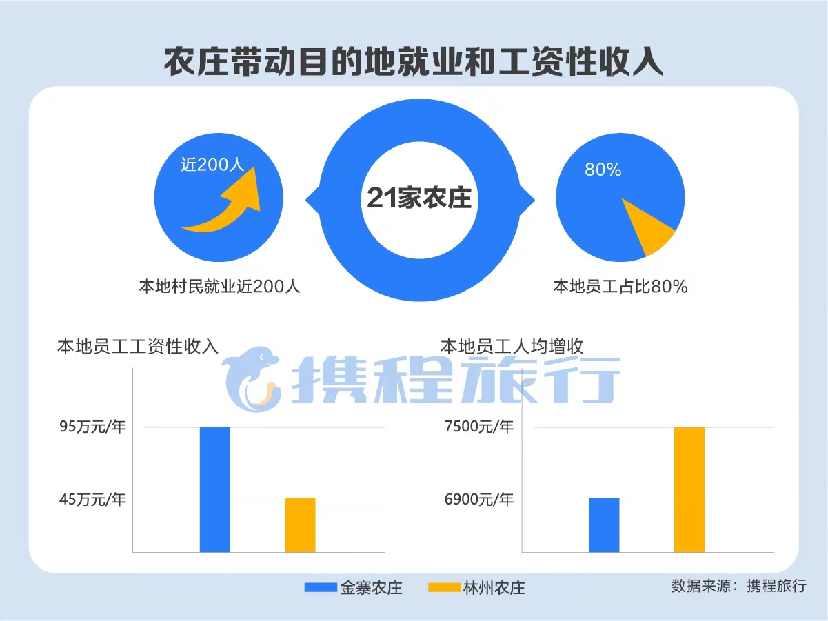 作为携程乡村旅游振兴的年度注脚,白皮书用数据证明农庄这把“金钥匙”的价值。特别是在目的地周边民宿品质提升方面,带动周边民宿软硬件改造,售卖价格最高增长30%。同时,农庄正在为所在地带来更多关联订单增长。在富民方面,农庄本地员工人均年增收7000元以上,并额外带动目的地其他收入增长超百万元。