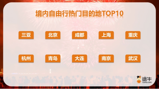 境内自由行热门目的地中,三亚、北京、成都、上海、重庆、杭州、青岛、大连、南京、武汉等目的地相关的“机票+酒店”等自由行套餐预订火爆。